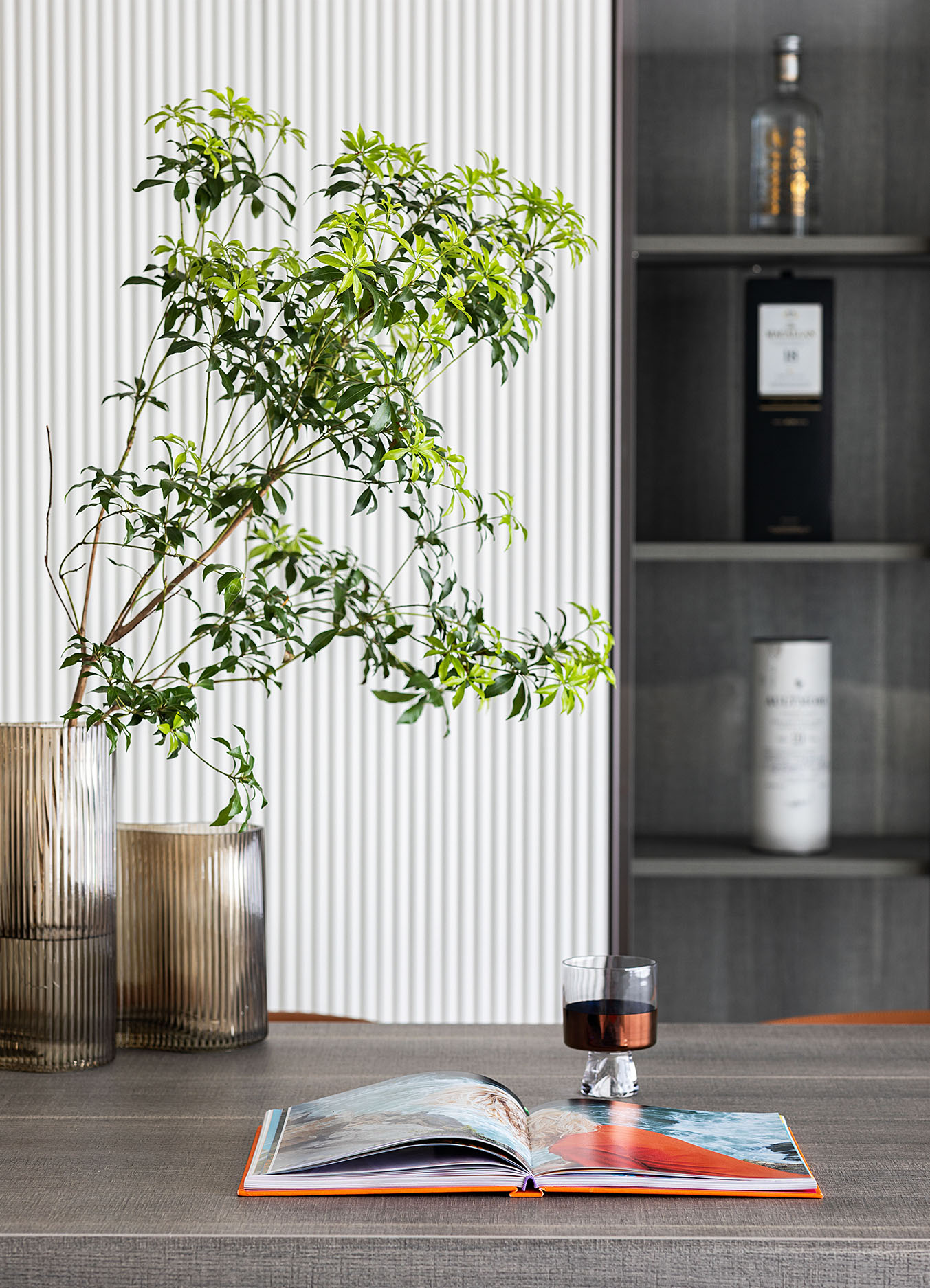 板材分明的莖脈紋理讓空間更具靈動氣息和愜意之感,