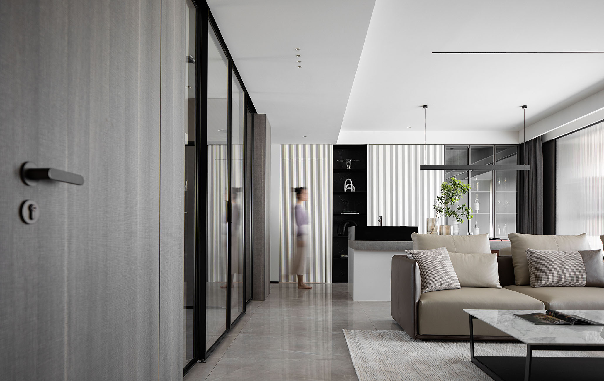 還是隱形門拼接處的毫厘分寸都彰顯出居住者對精致生活的追求,