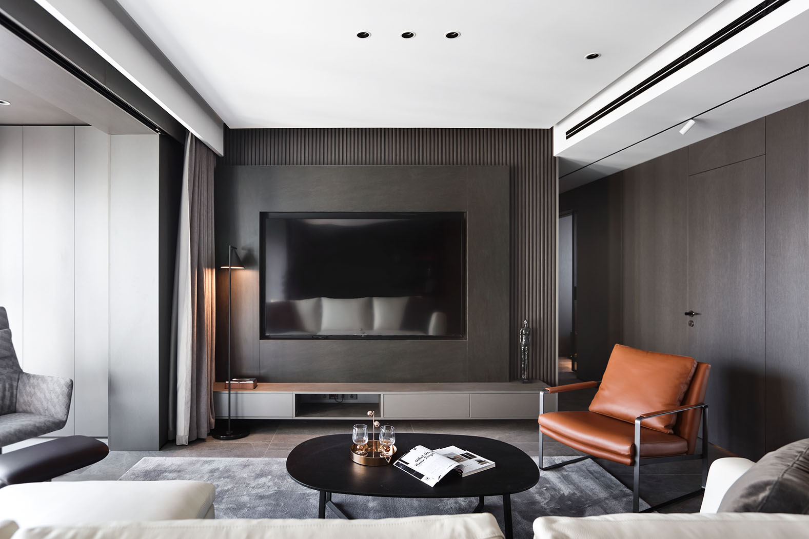設(shè)計(jì)師用格柵豐富電視背景墻的造型,具有設(shè)計(jì)感,