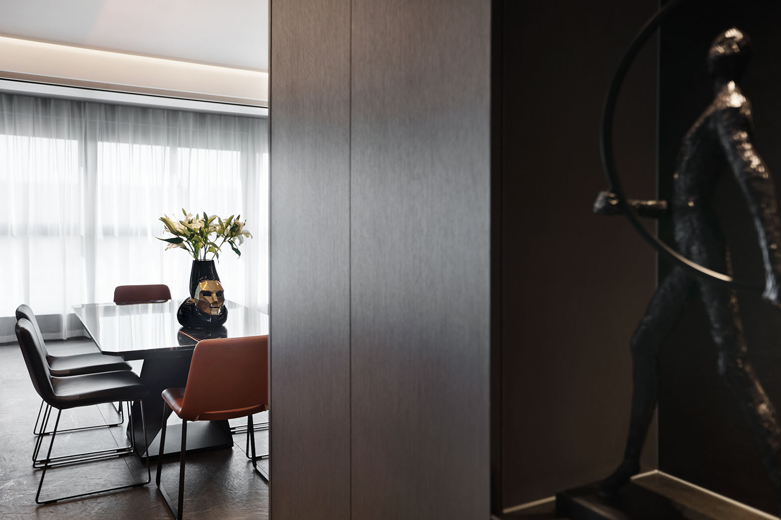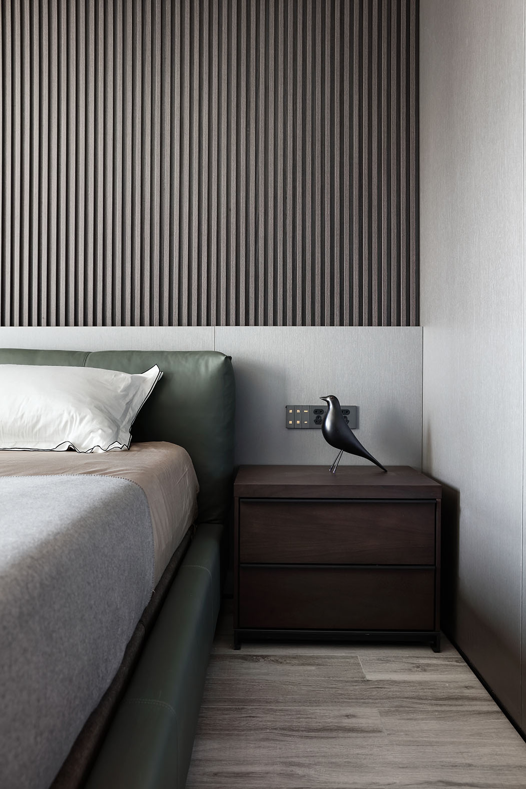 格柵的設(shè)計(jì)與客廳呼應(yīng),簡(jiǎn)練的線條呈現(xiàn)出古典氣韻,