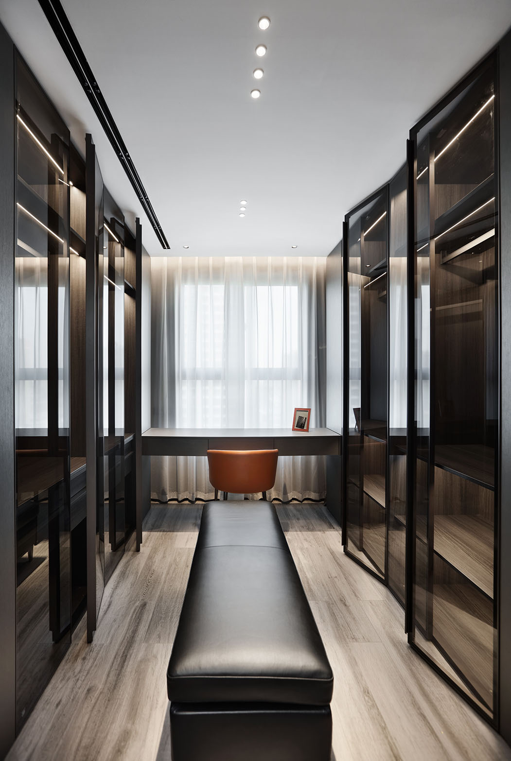 步入式衣帽間沒(méi)有過(guò)多的裝飾,