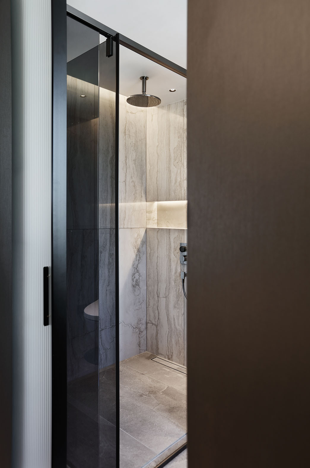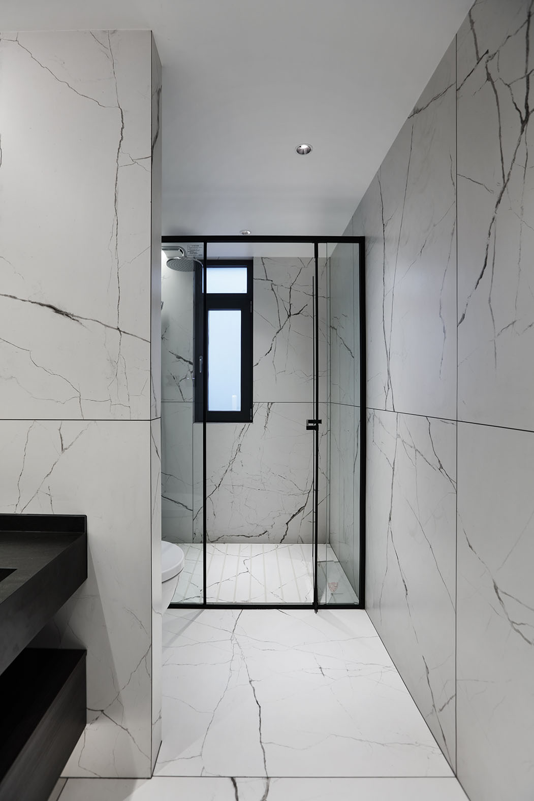 干濕分離的空間內(nèi),大理石與灰色系的搭配高級(jí)且時(shí)尚,