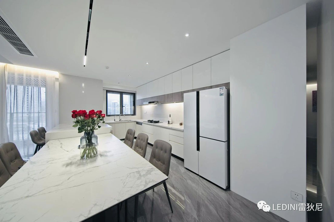 白色是許多喜歡現(xiàn)代風(fēng)格人士的白月光,它純凈、簡約、明快、家居設(shè)計中再搭配一些金屬元素和綠植,