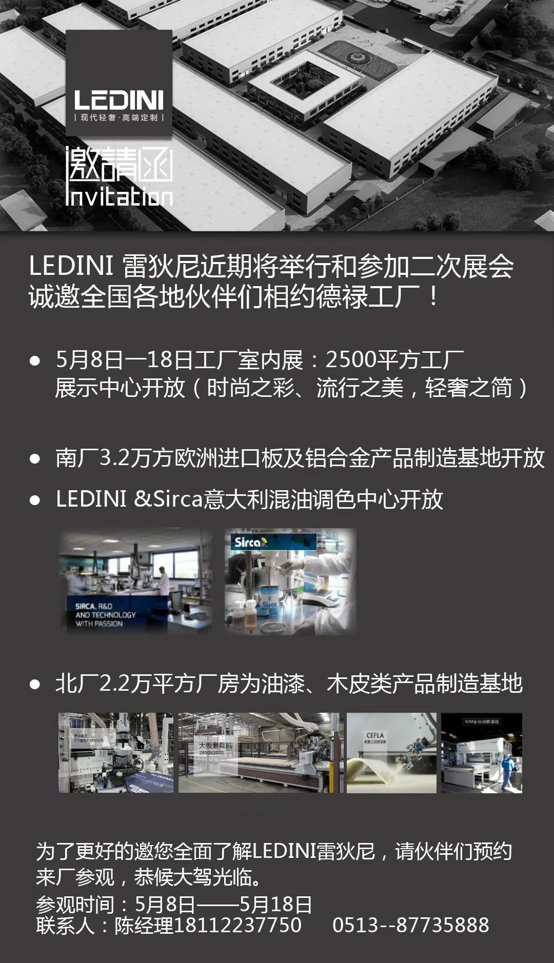 LEDINI雷狄尼近期將舉行展會,誠邀全國各地伙伴們相約德祿工廠!