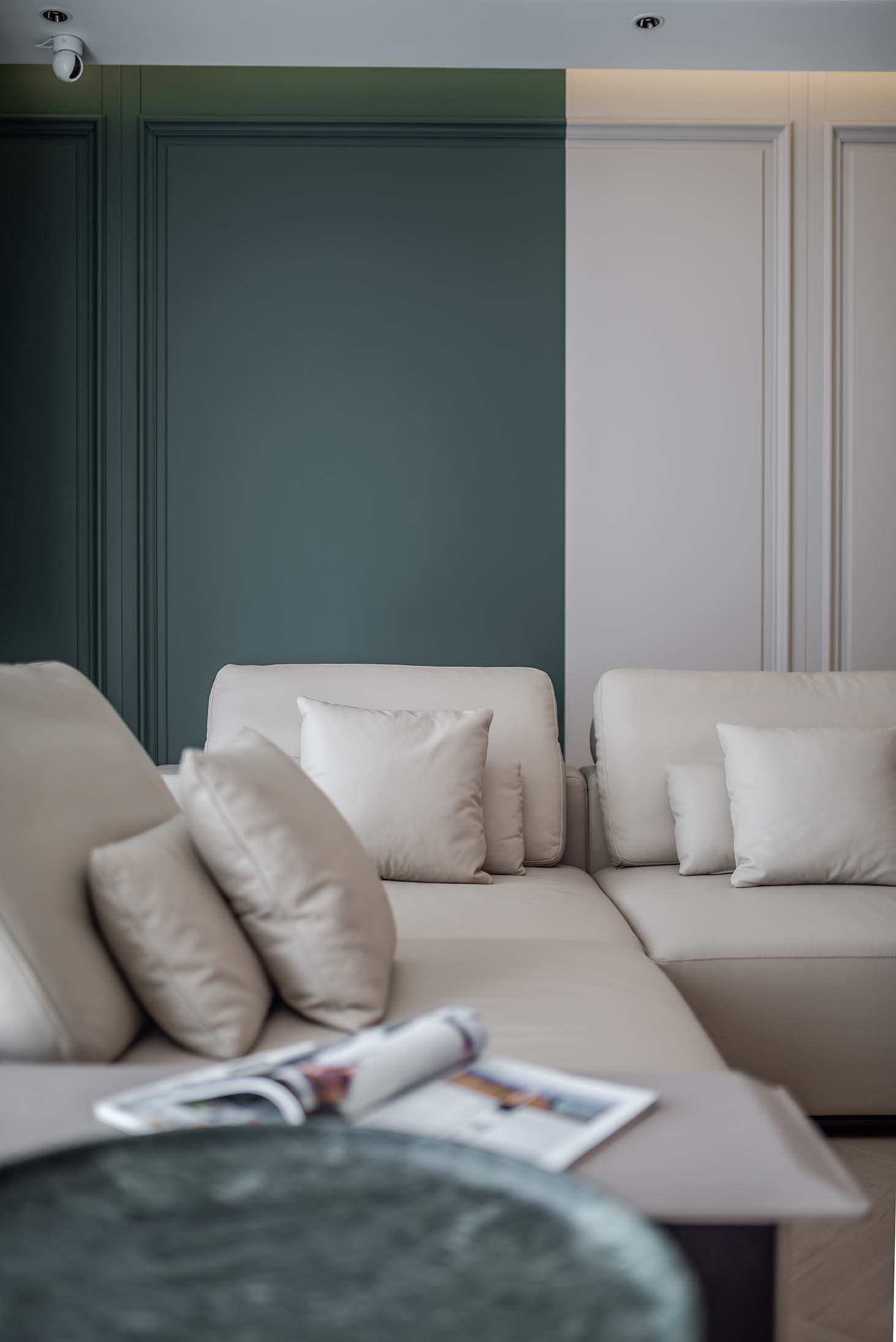 大面積的綠色點綴拼接工藝尼斯木皮,營造精致清新浪漫的氛圍;