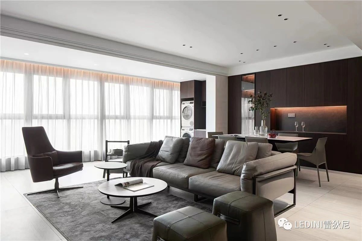 運用黑白灰、點綴低飽和度色系與不同材質之間巧妙融合,