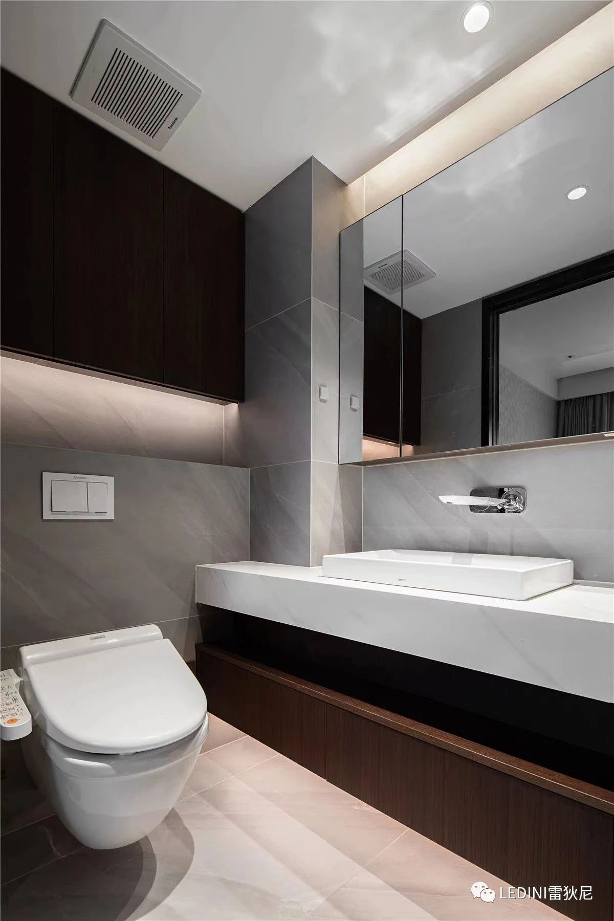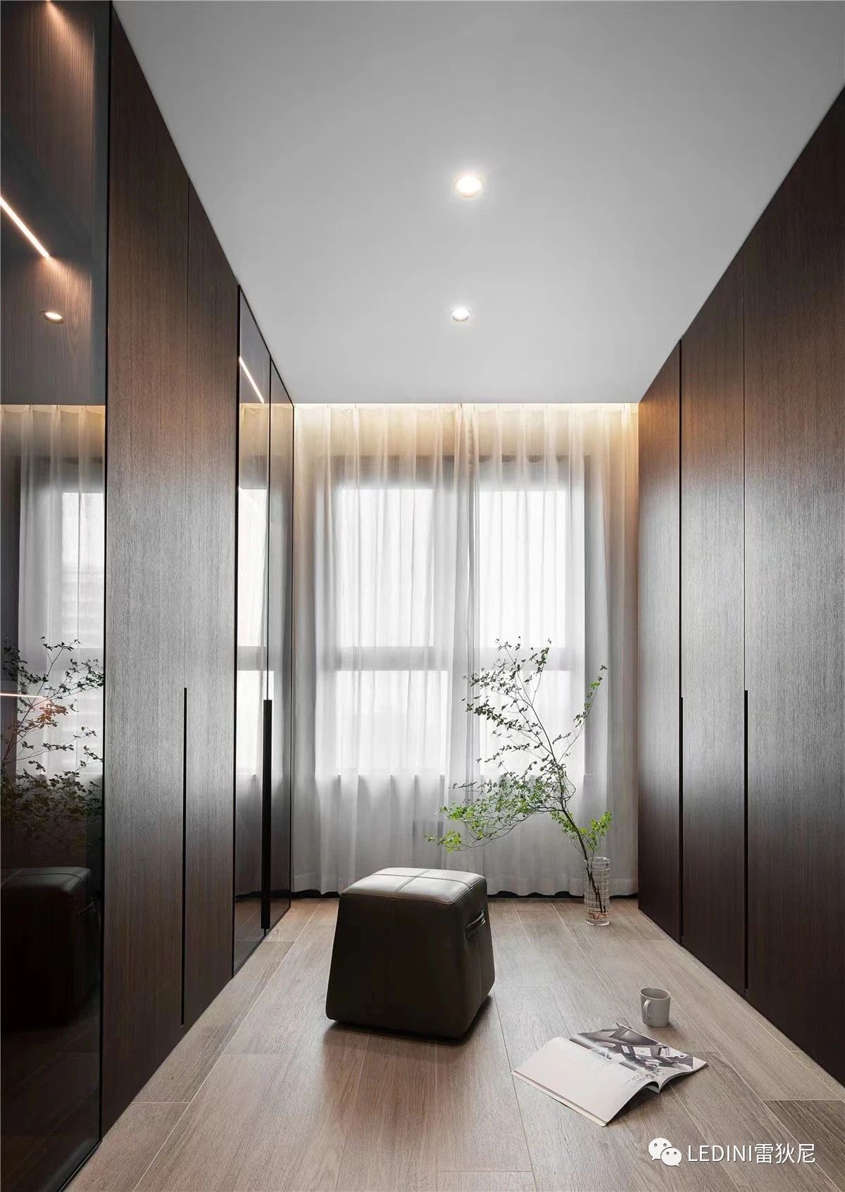 本案中,設計師選用了LEDINI進口煙熏橡木木皮為主要元素,