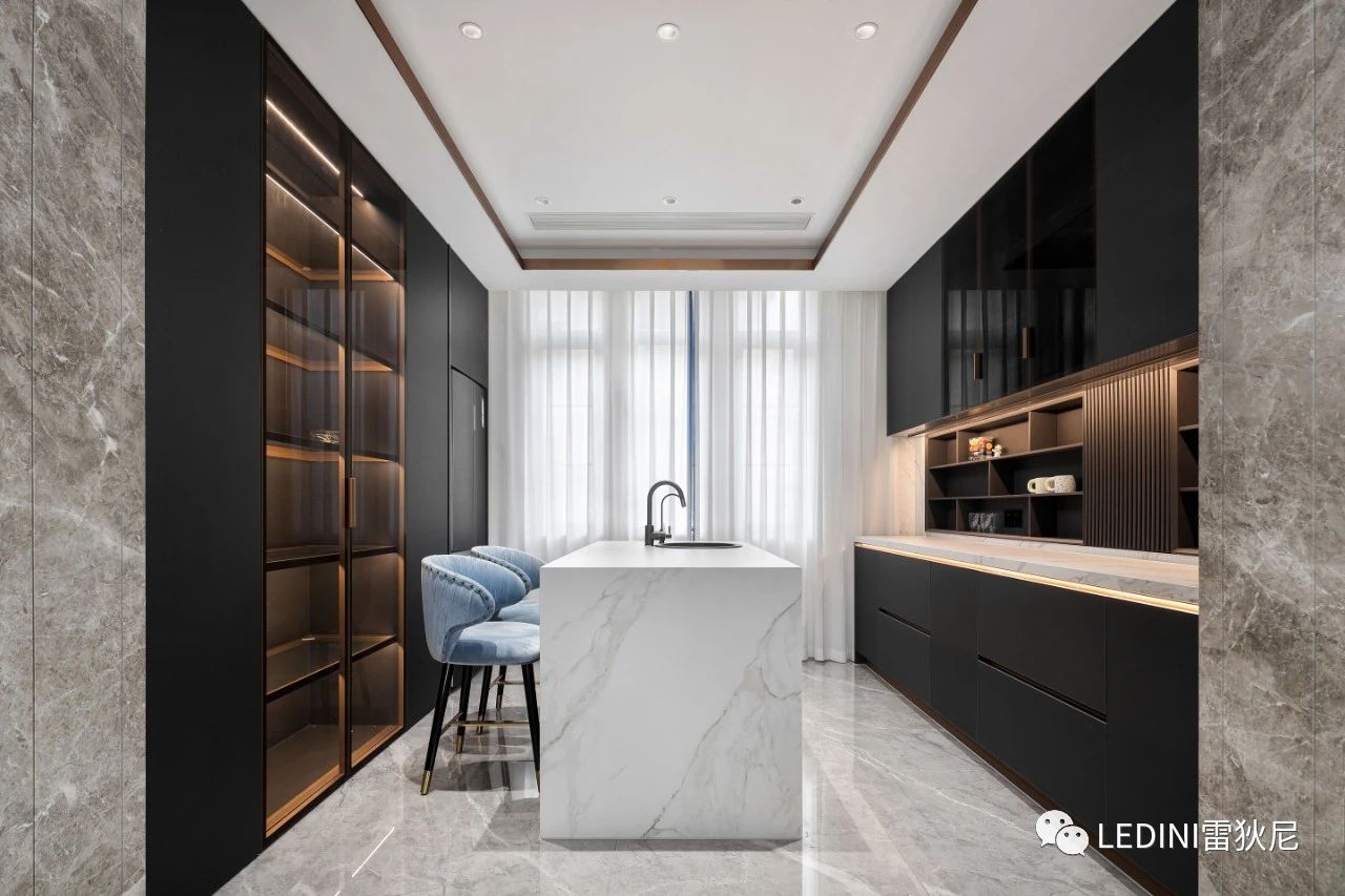 與黑色柜體相互映襯,讓空間充滿時尚優雅之感。