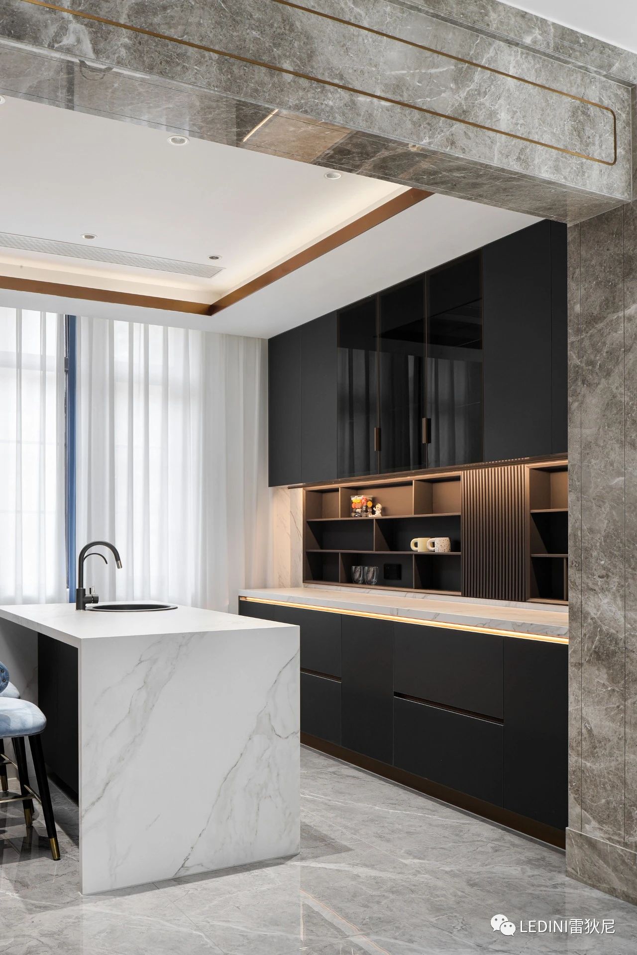 大理石溫潤貴氣,金屬清冷時尚,兩者搭配能夠帶來強烈的視覺沖擊感。