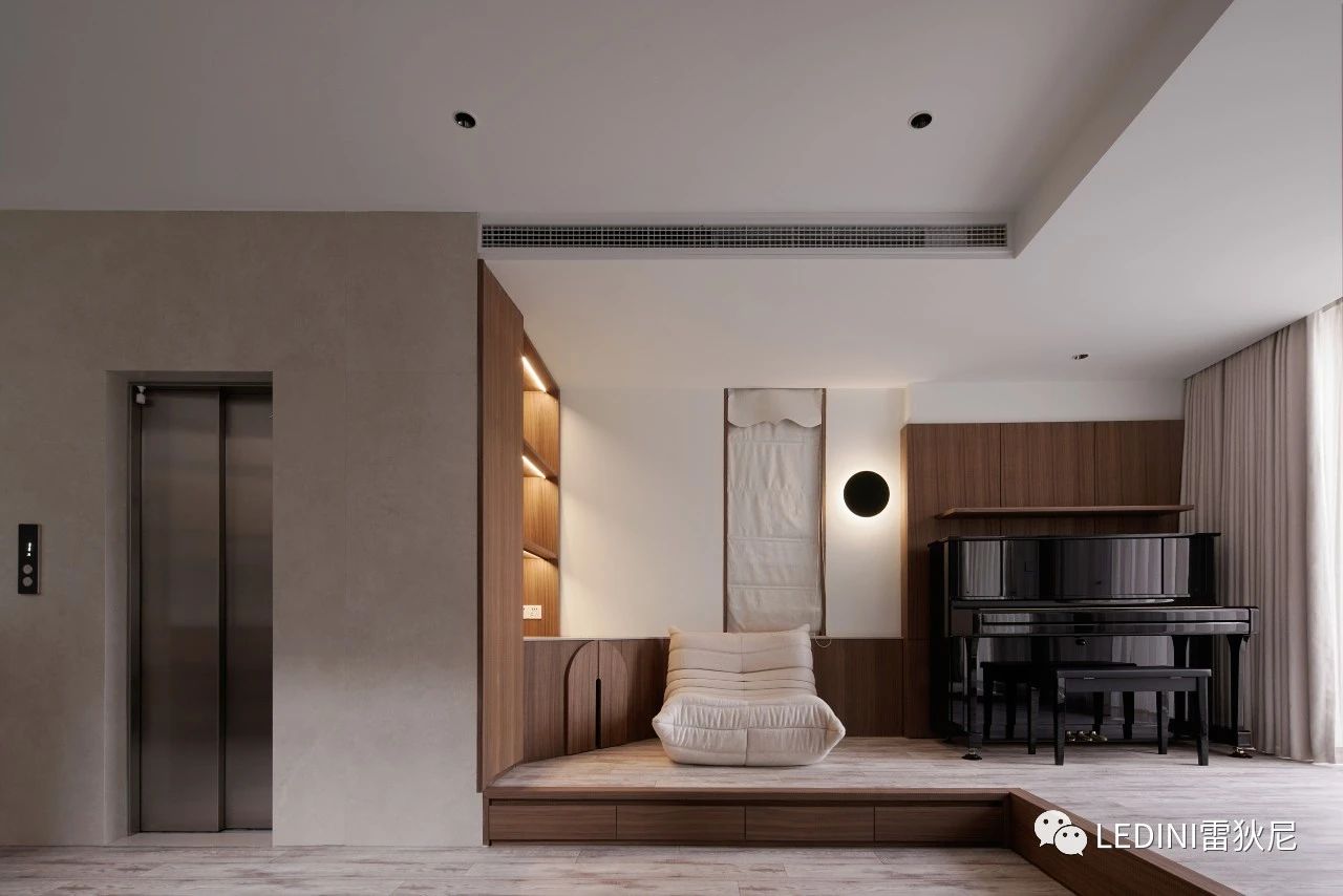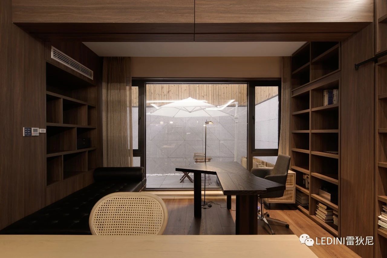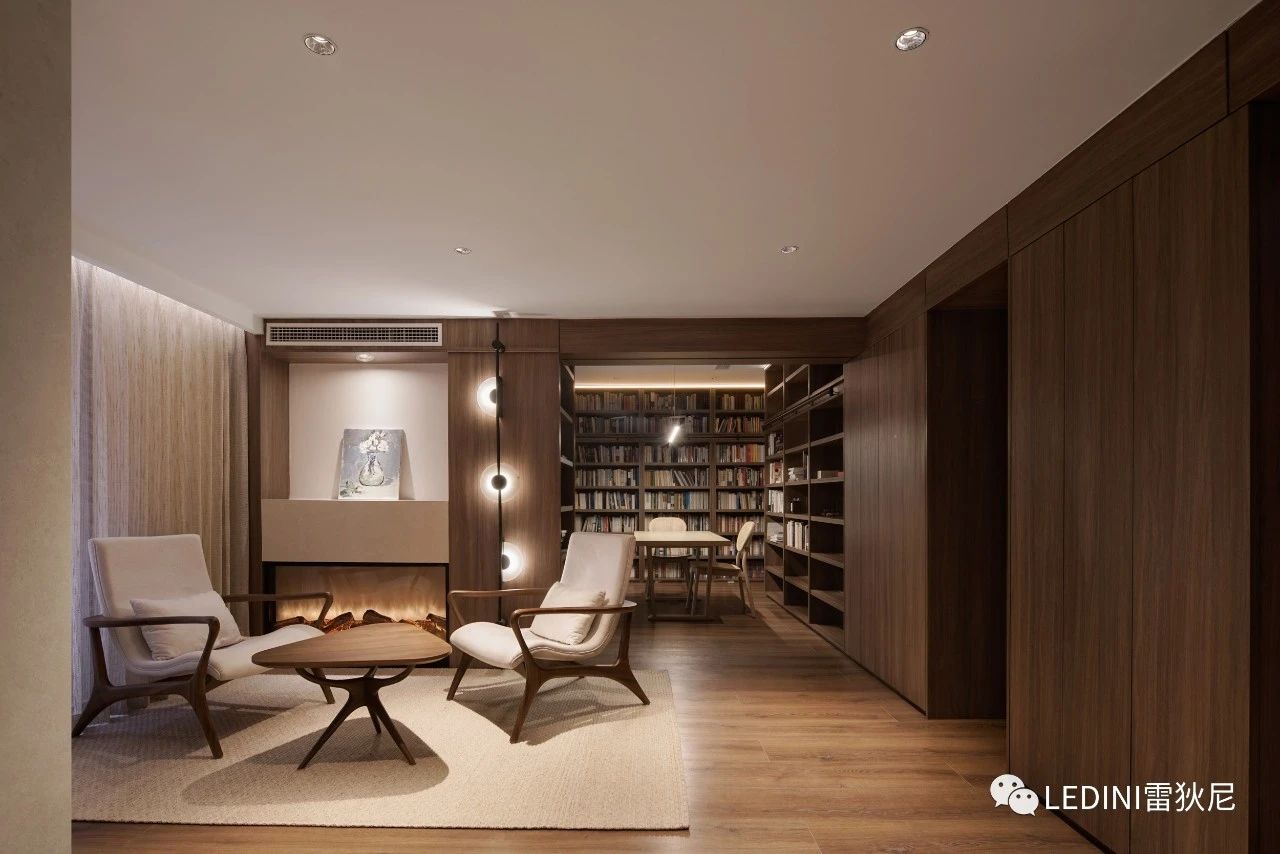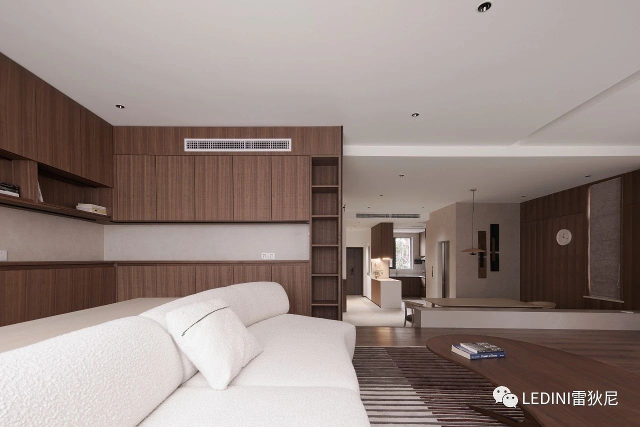 于是選用了LEDINI胡桃木鋸齒紋為全屋主要材料,相較于傳統板材,
