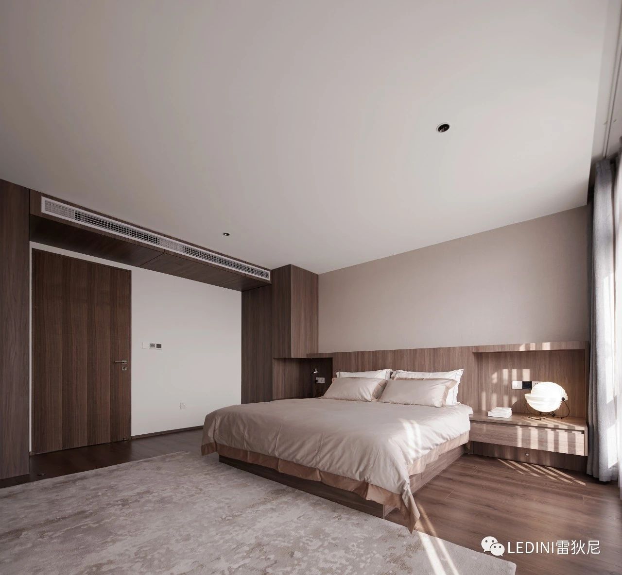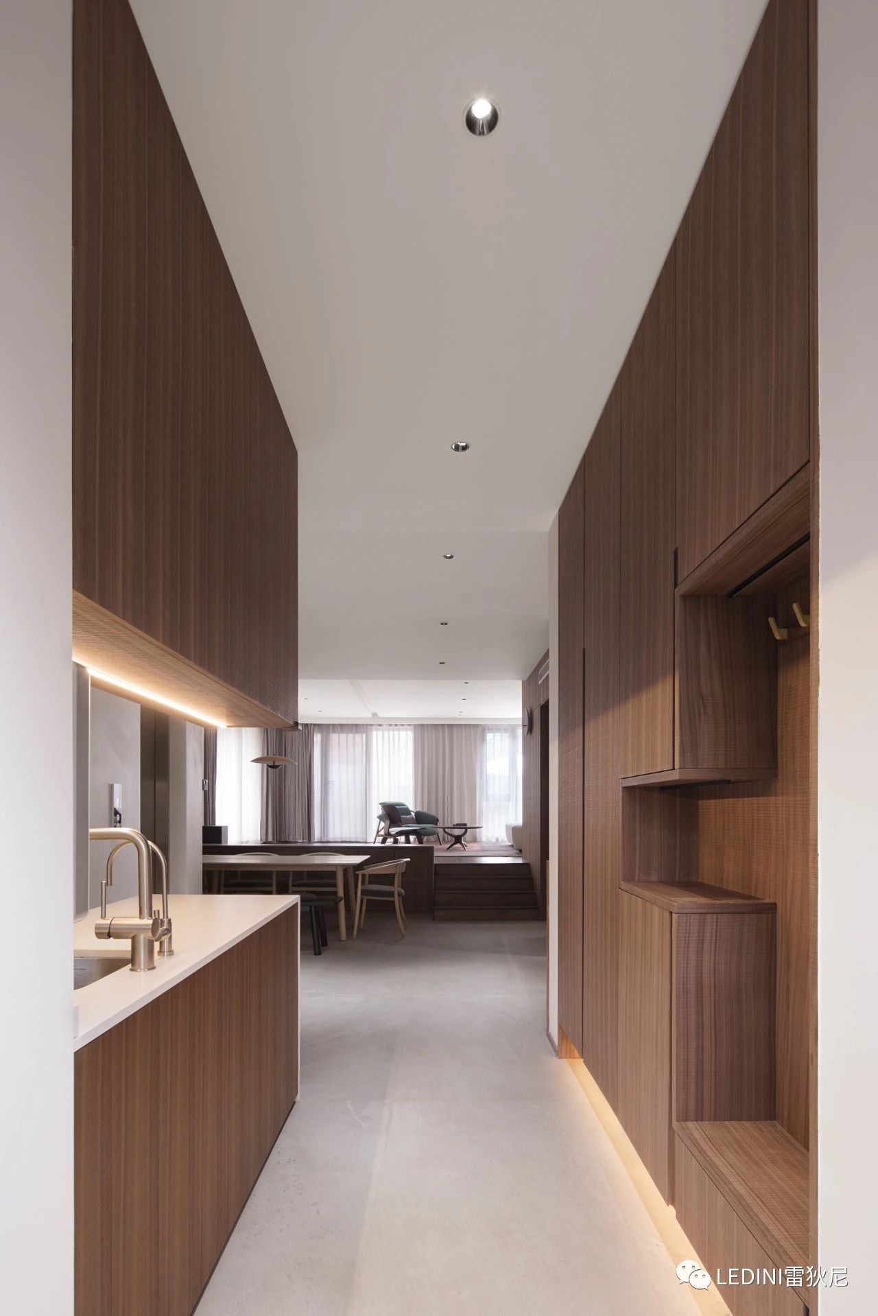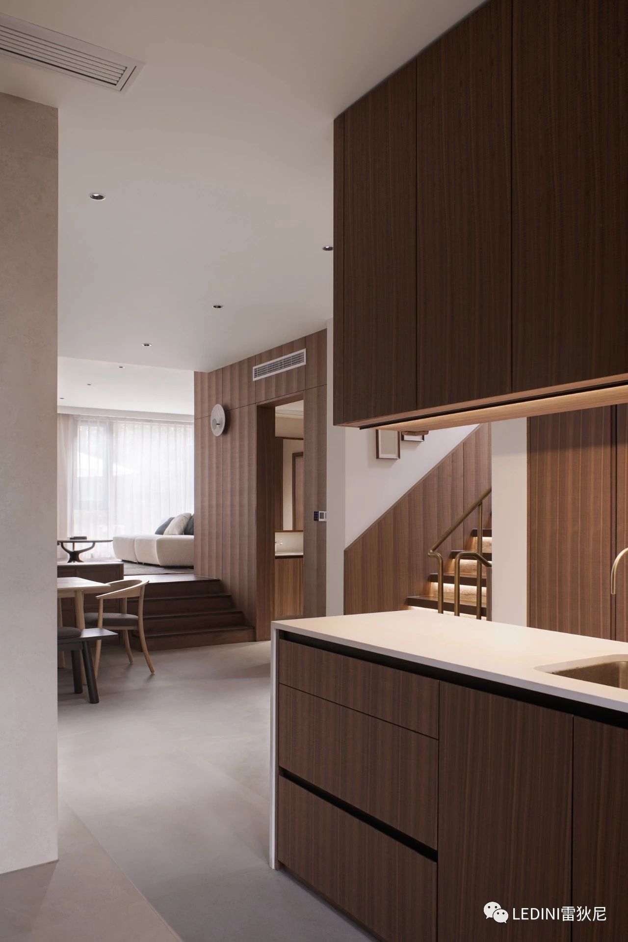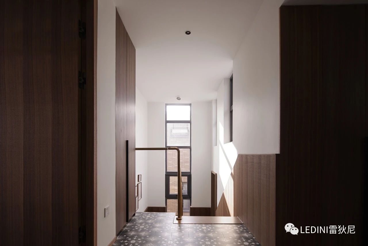于是選用了LEDINI胡桃木鋸齒紋為全屋主要材料,相較于傳統板材,