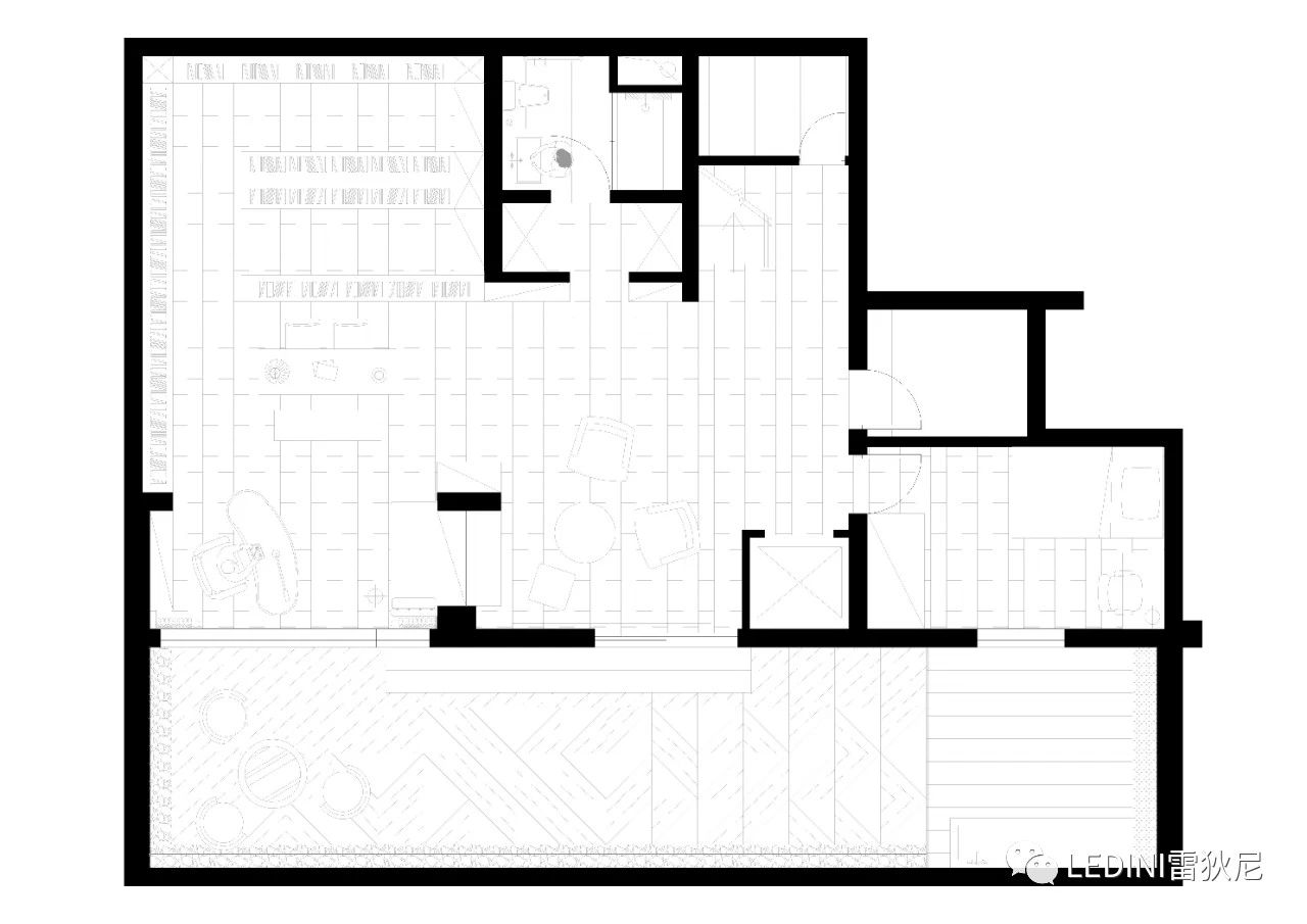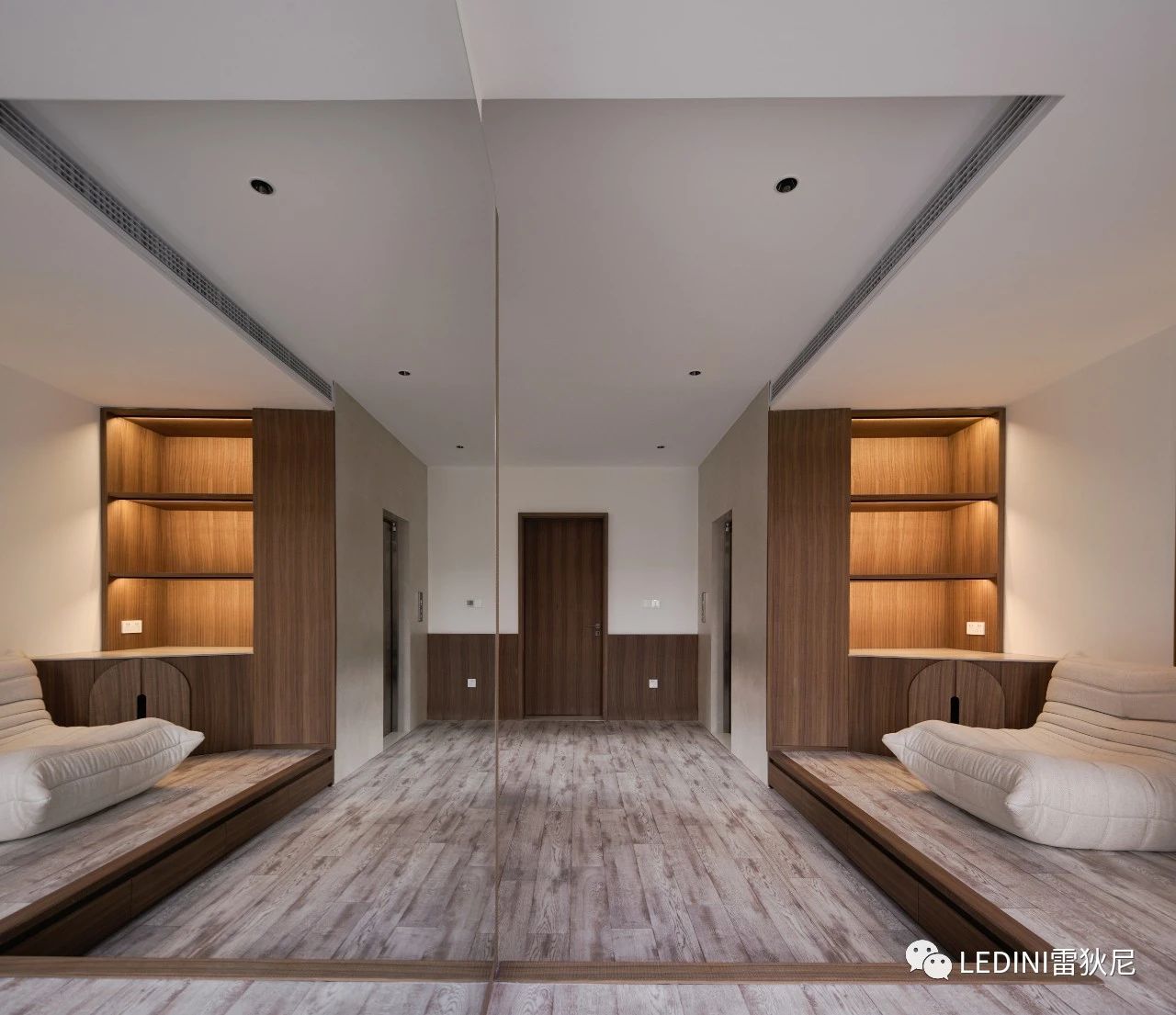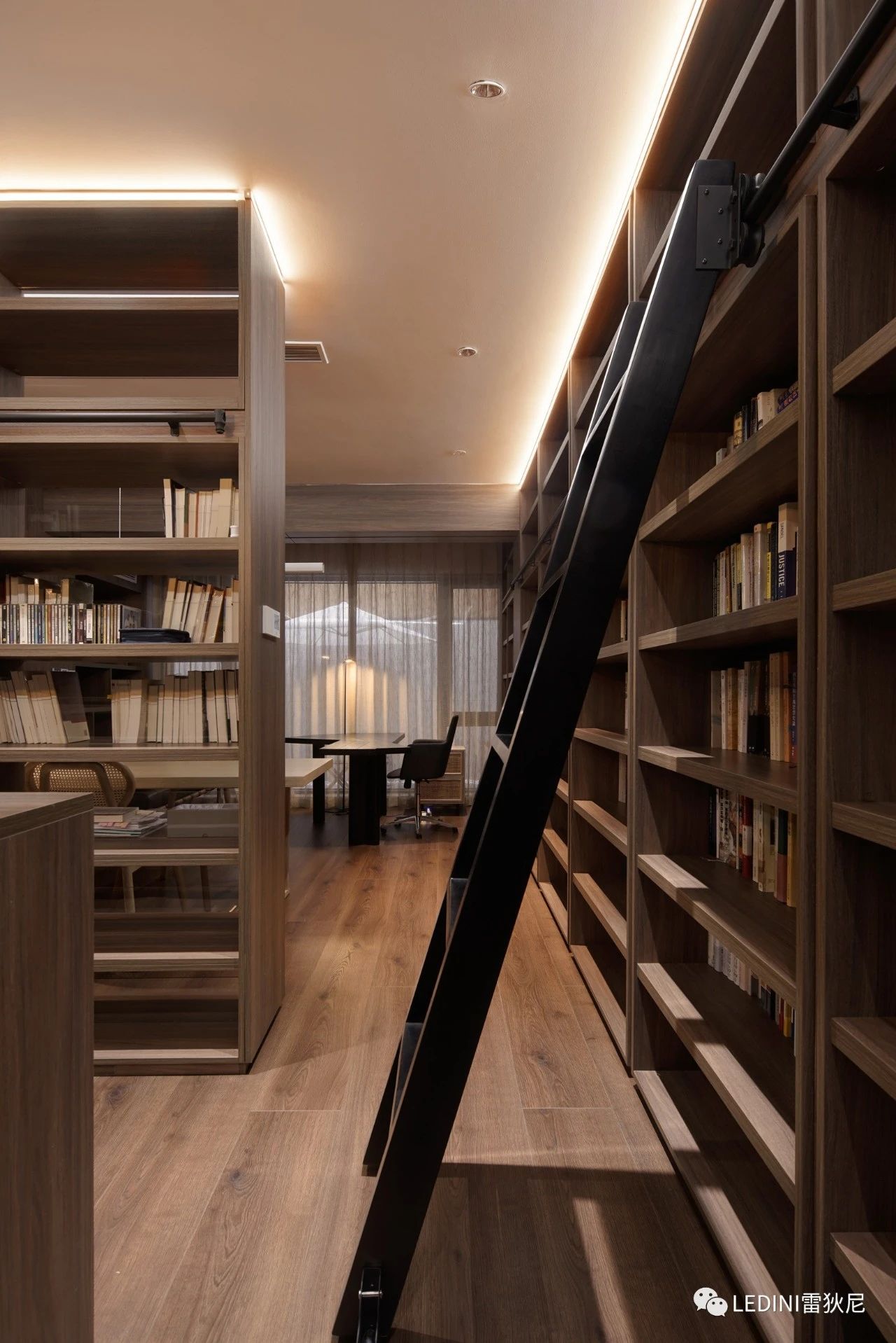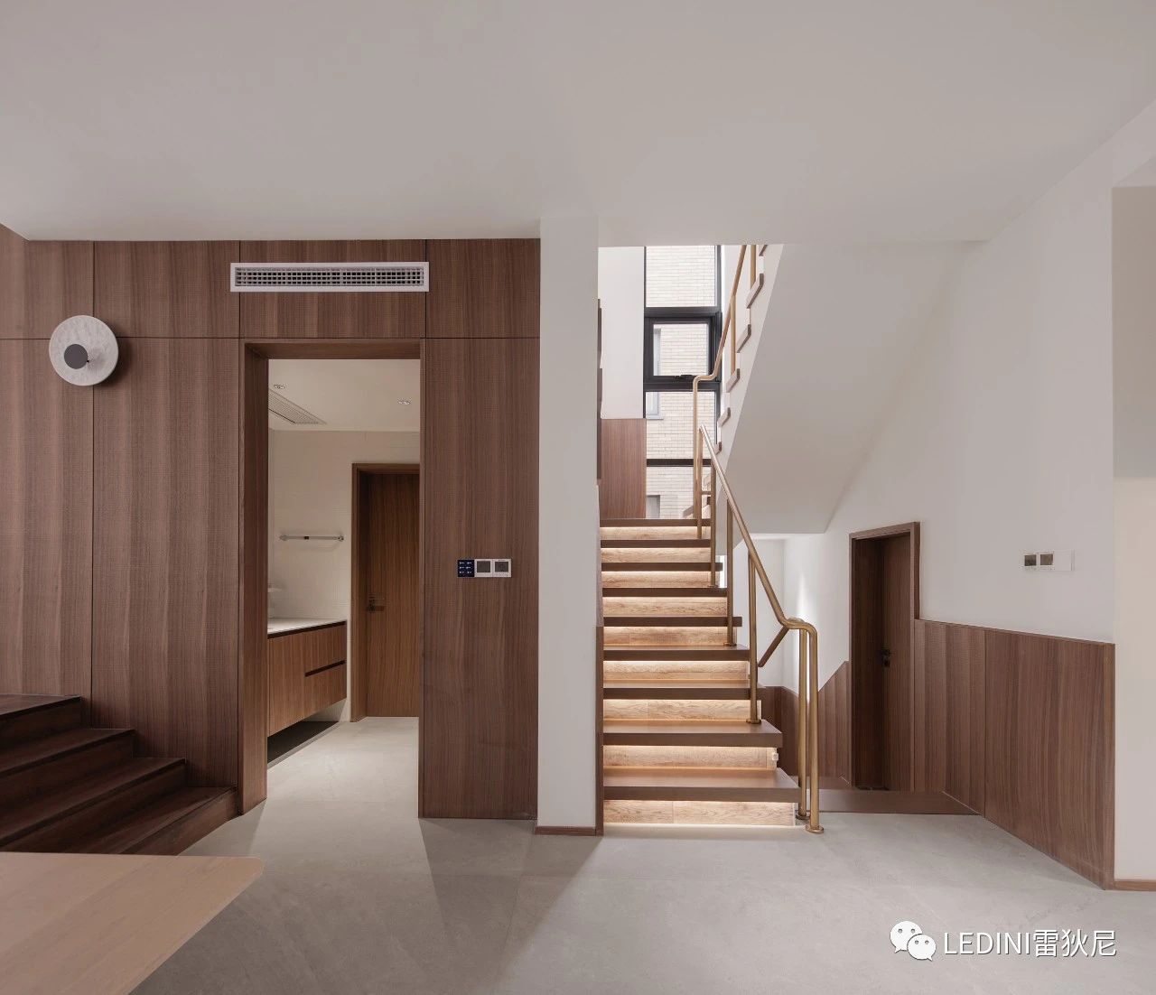 于是選用了LEDINI胡桃木鋸齒紋為全屋主要材料,相較于傳統板材,