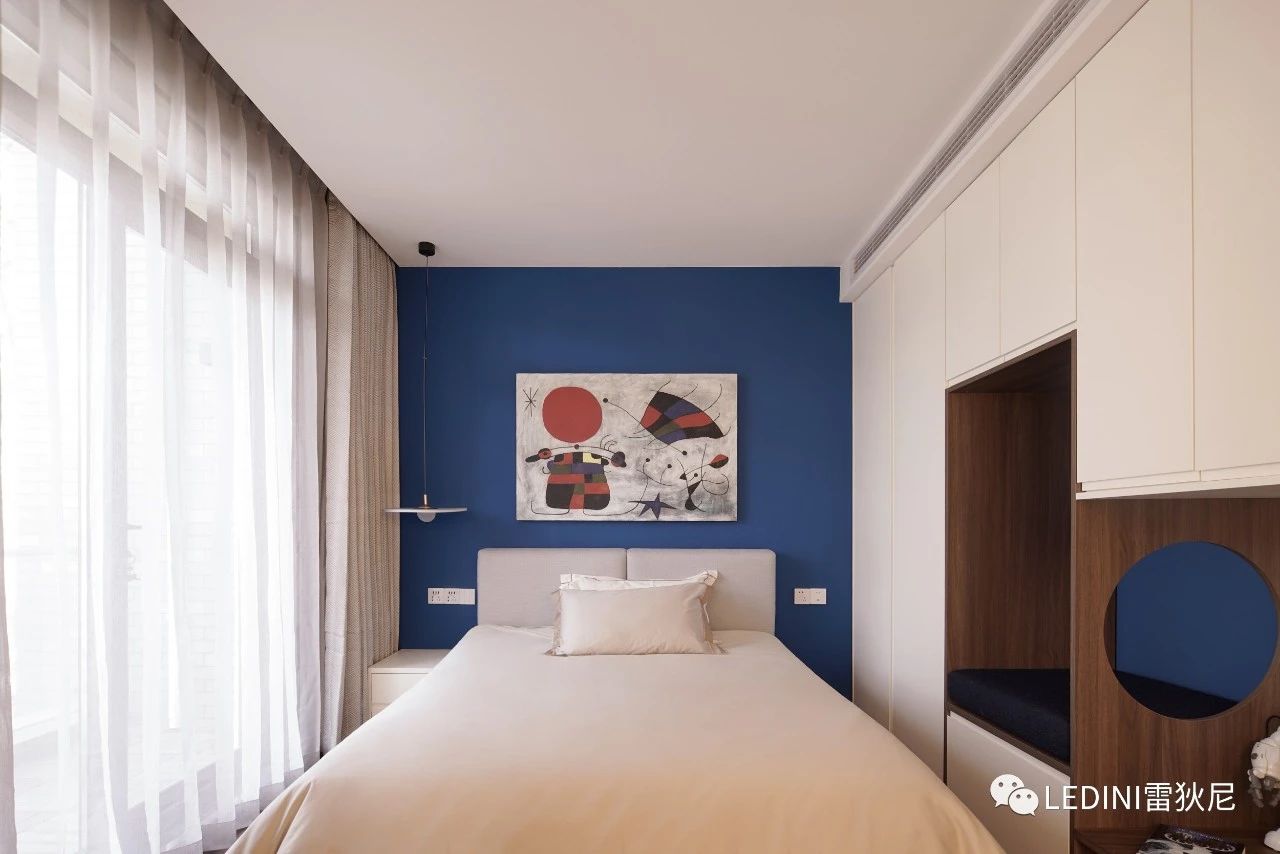 簡約又富有細節,設計師采用白色和藍色的色彩對比法,