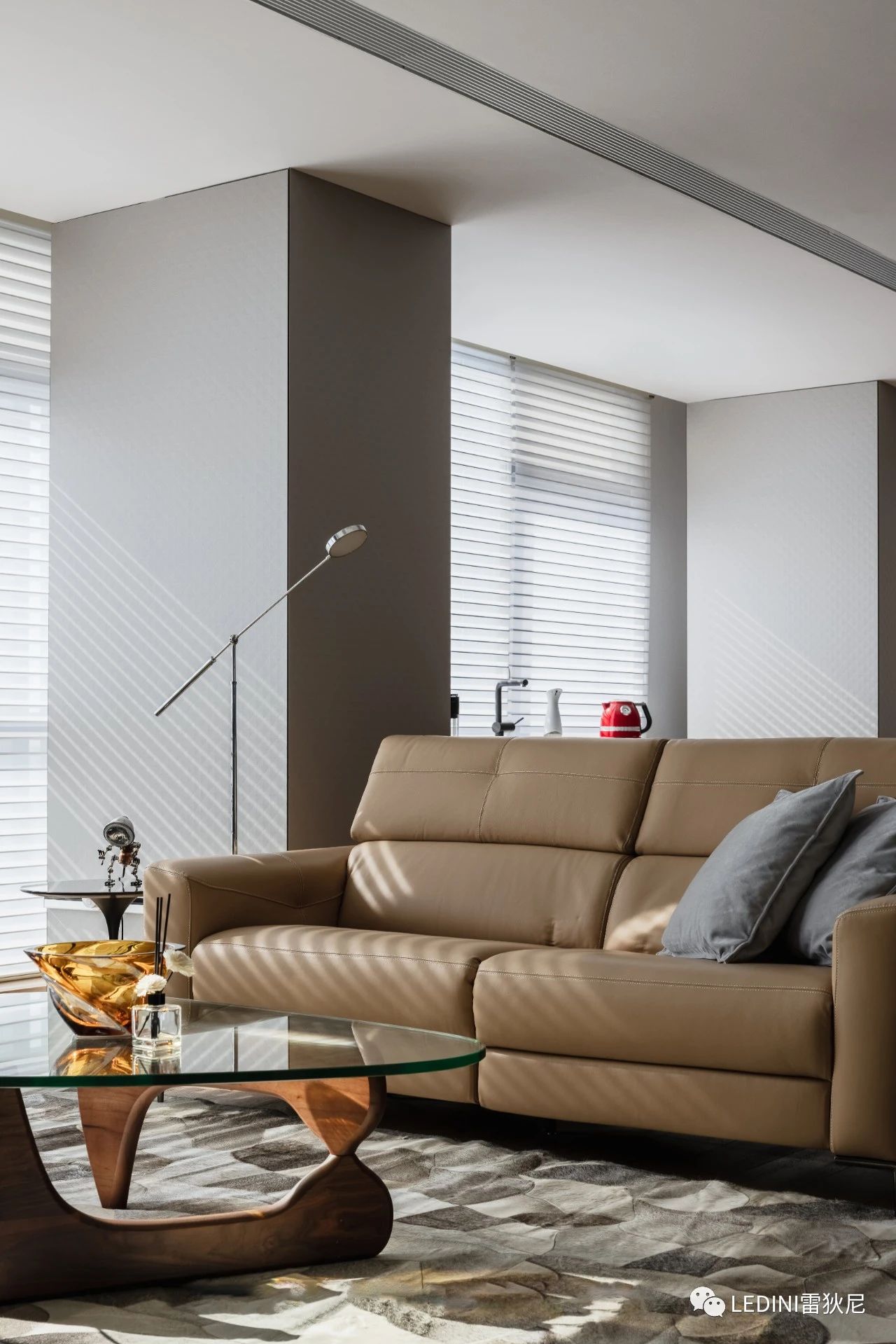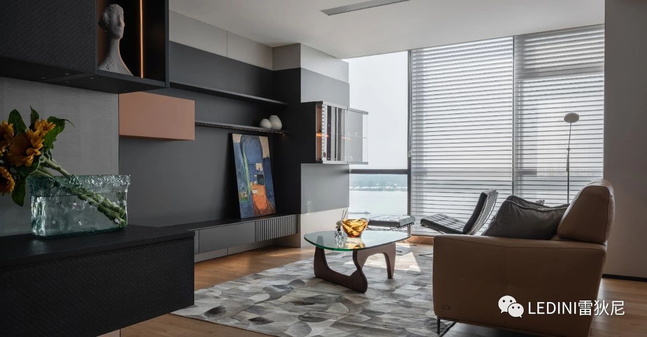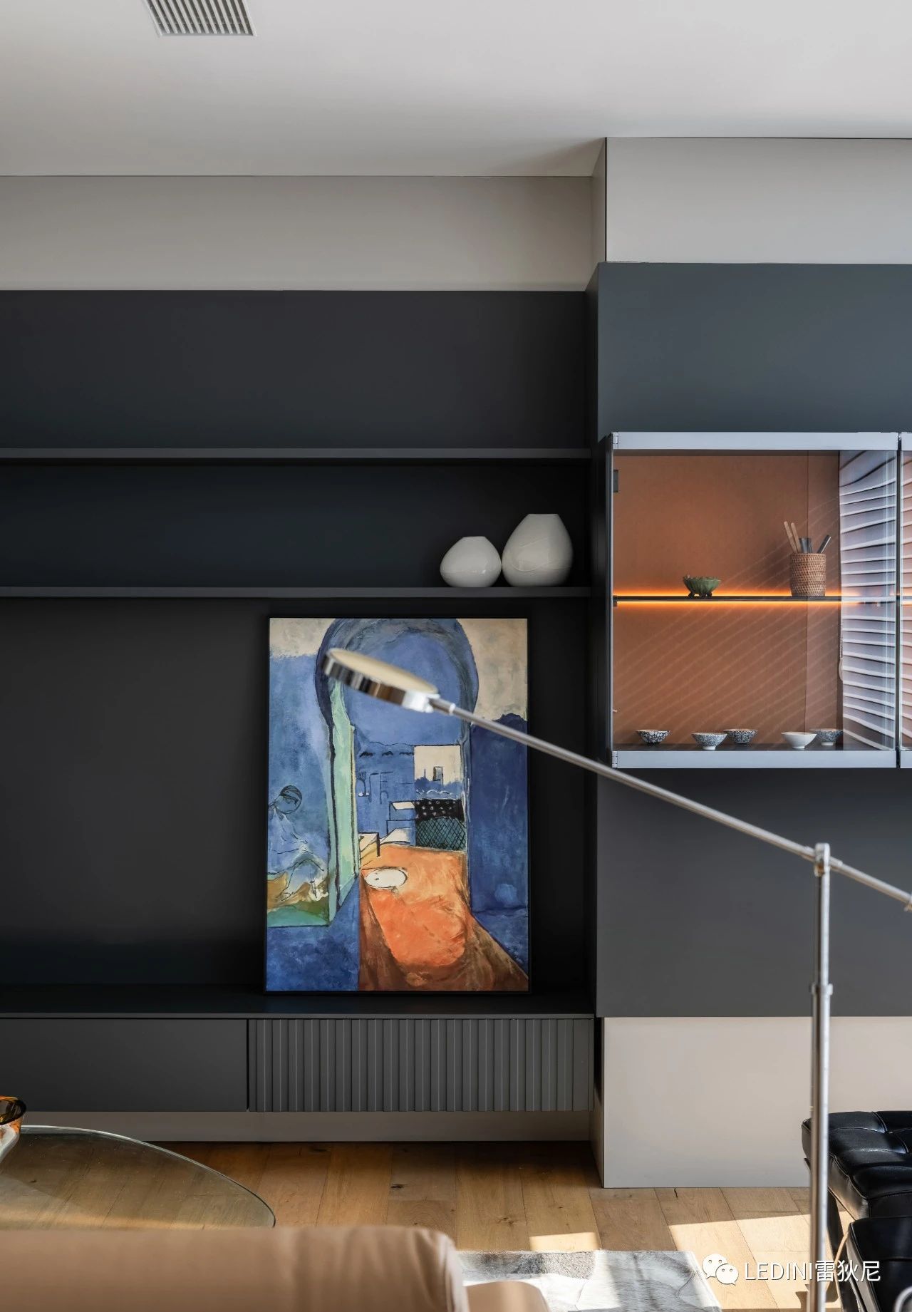 氛圍穩(wěn)重凝練,適量的燈光植入,生出家的暖意。