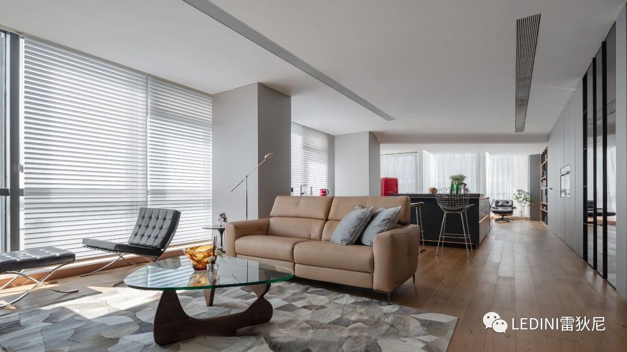 本案打破傳統(tǒng)展廳排布,將私宅設(shè)計(jì)真實(shí)呈現(xiàn)。住宅一面擁有落地窗,坐擁極佳景觀,