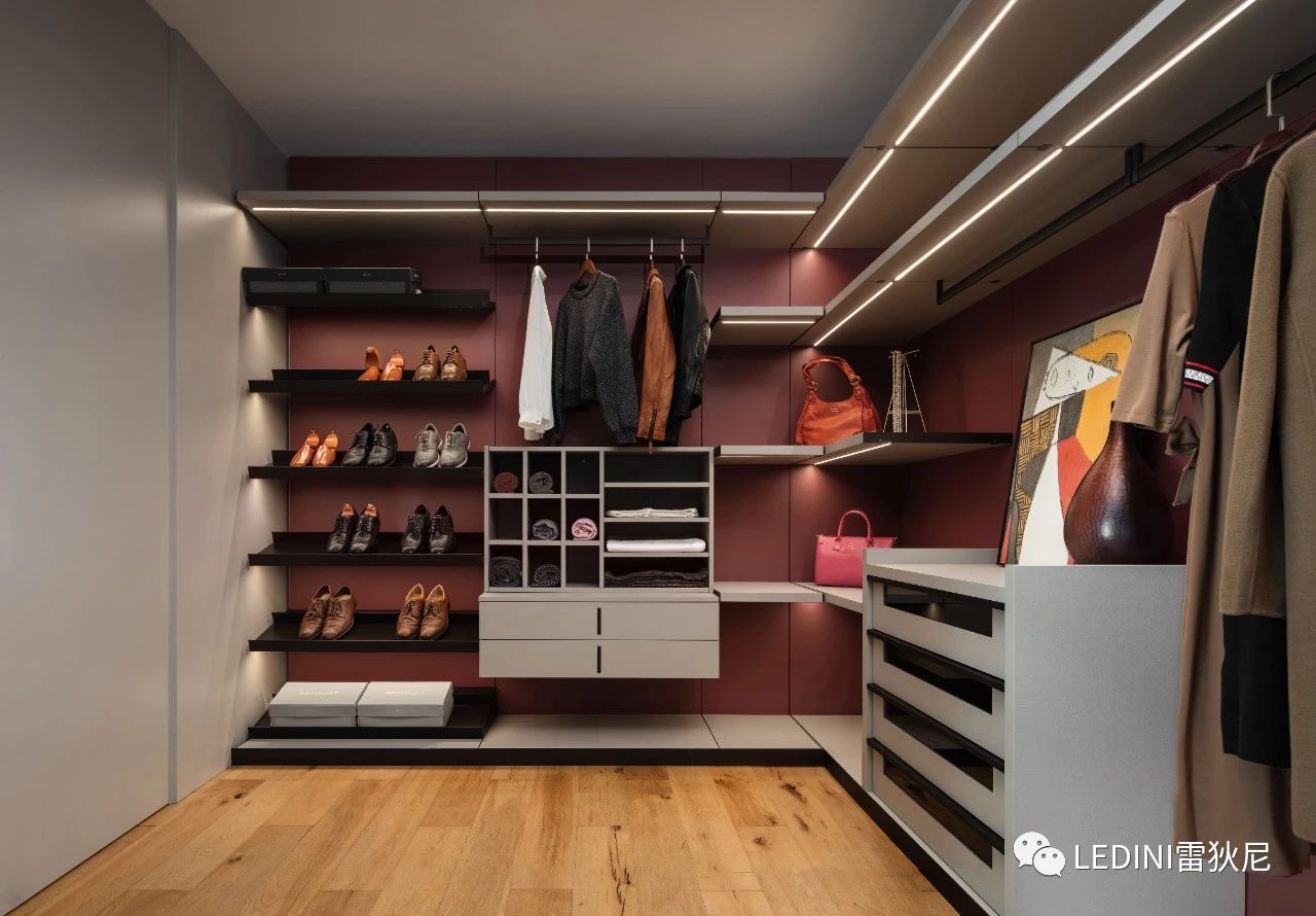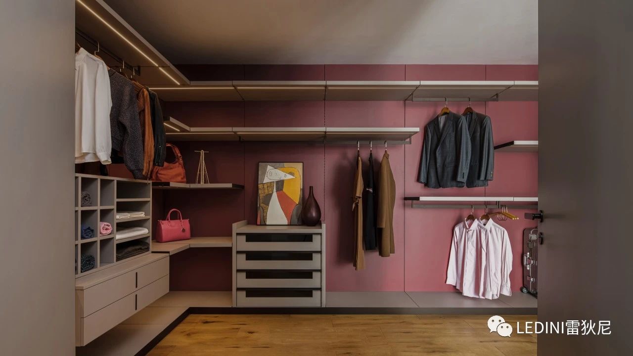 步入式衣帽間憑借優(yōu)質(zhì)的炫彩和貼心的功能設(shè)計(jì),將各類(lèi)服飾收納其中,