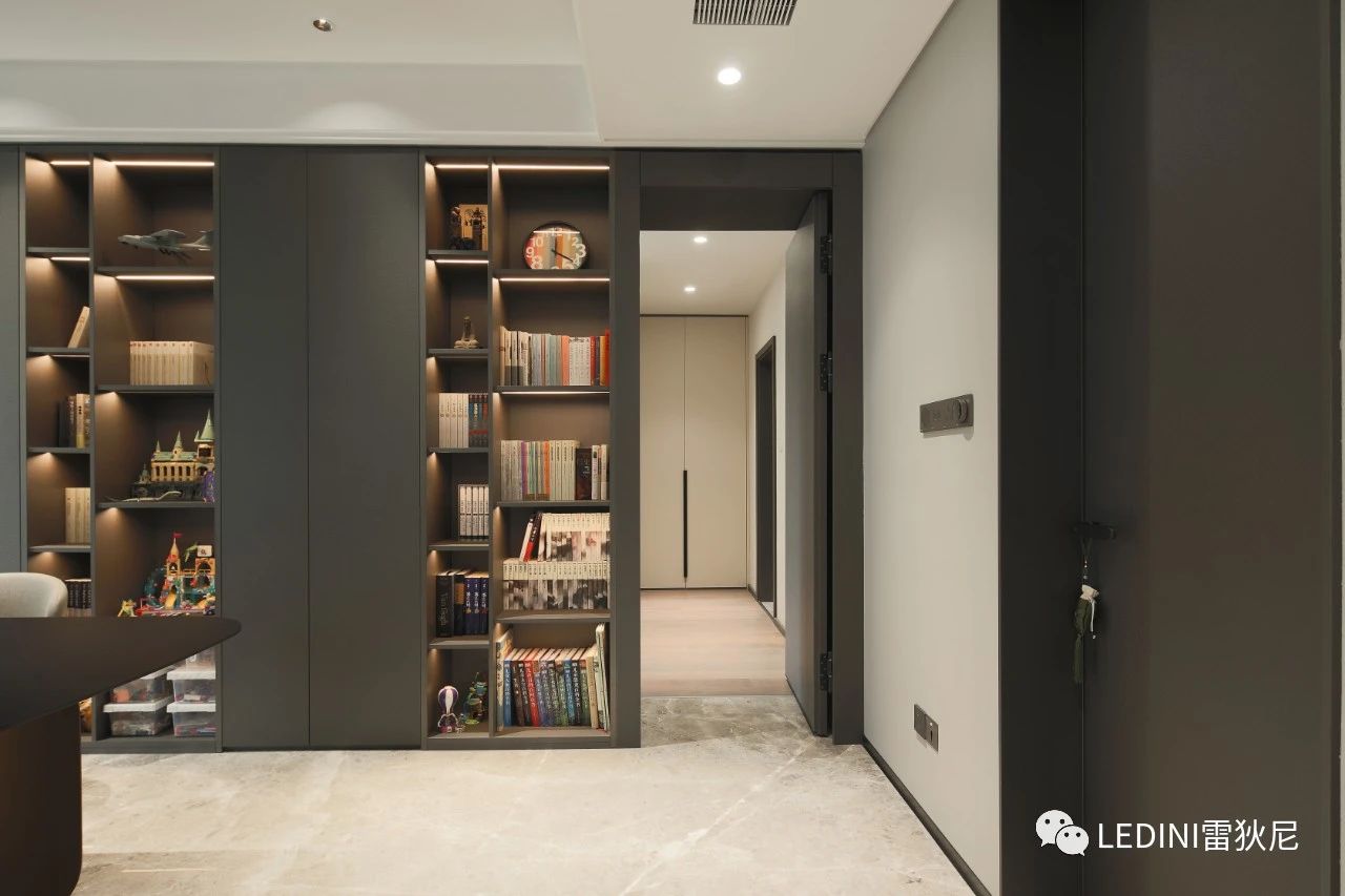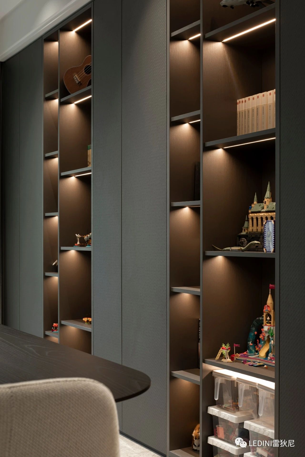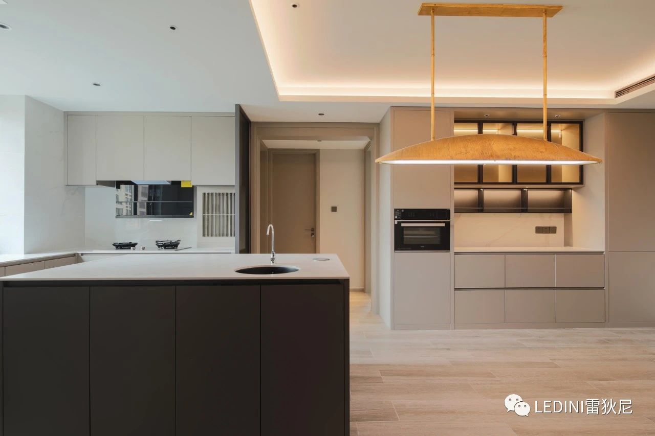 柜體采用了LEDINI進口免漆板FB35黑色馬賽克皮紋