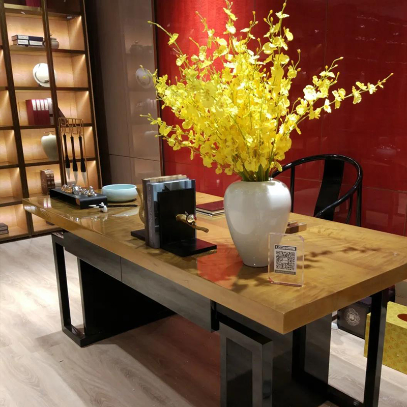 華麗的金絲楠木辦公桌在光影中展示著他高貴的姿態(tài);
