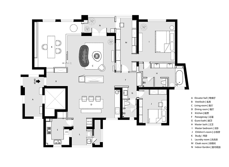 兩者融合,使空間不乏潺潺流動的靈韻之美,